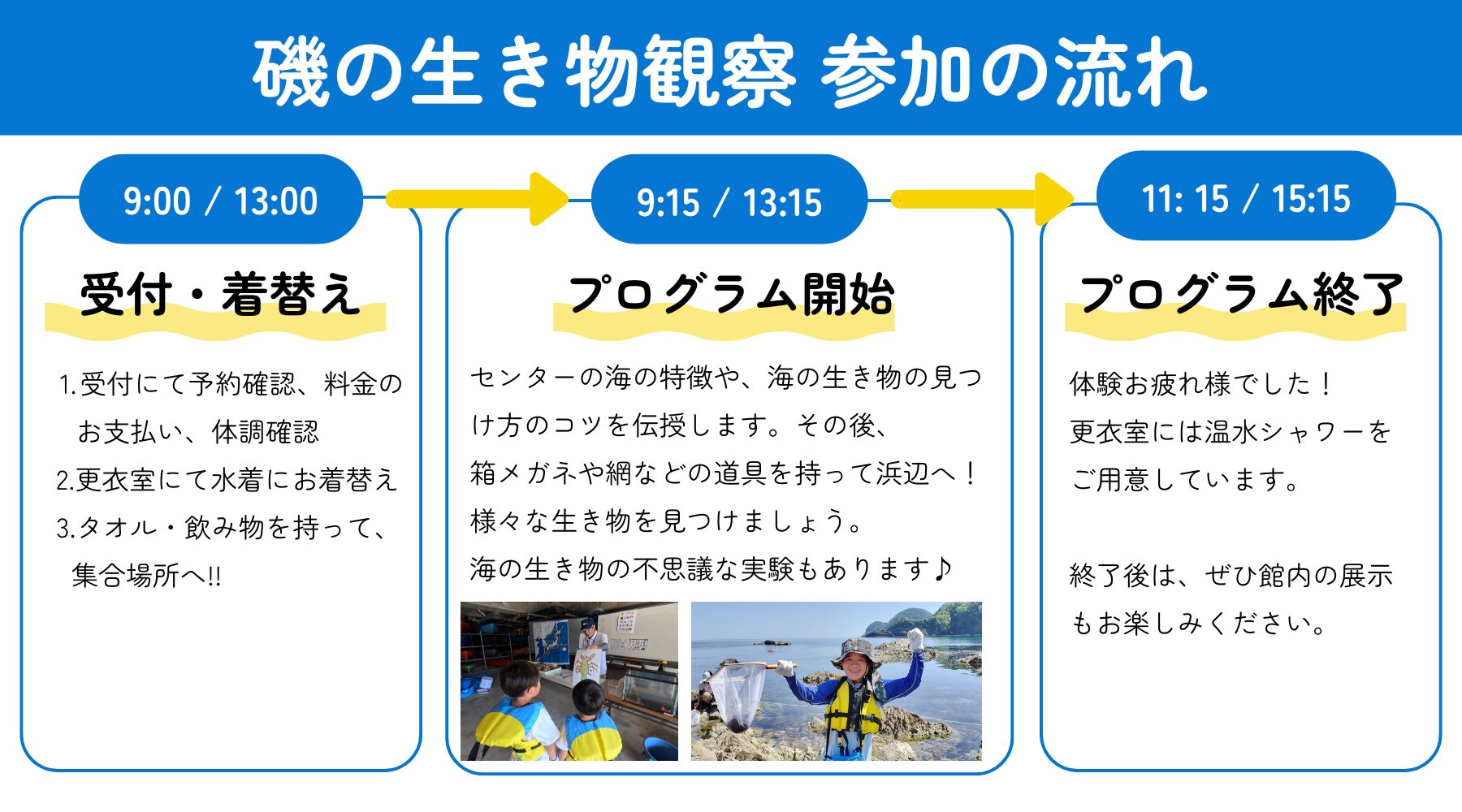 ※天候、海況、その他自然状況によりプログラムが中止となる場合もございます。